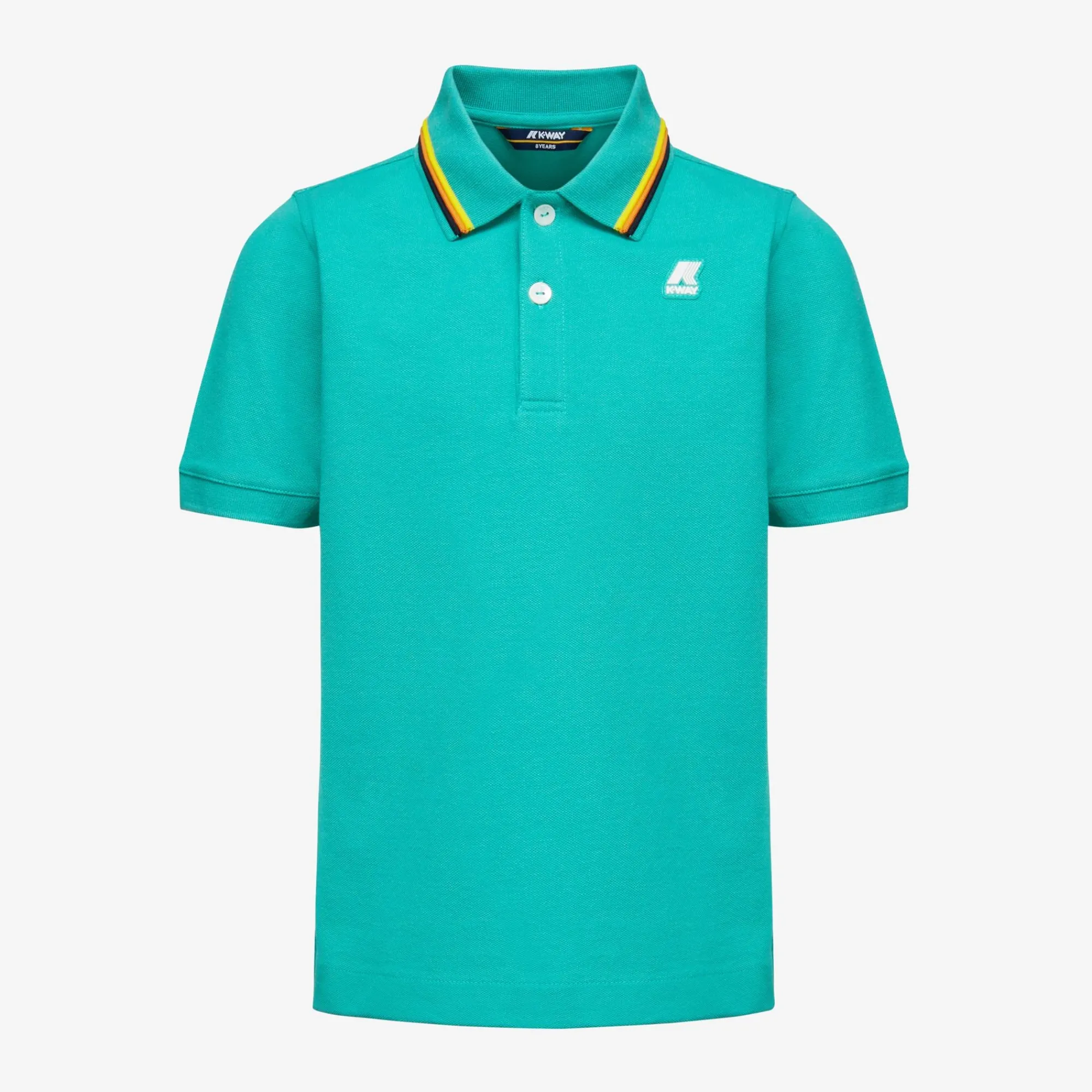 Jude è la polo da bambino realizzata in piquet di cotone stretch morbido ed estremamente flessibile. Si caratterizza per il bordo del colletto con profilo a righe ispirate al tape K-Way e gli spacchetti sui lati che assecondano i movimenti.