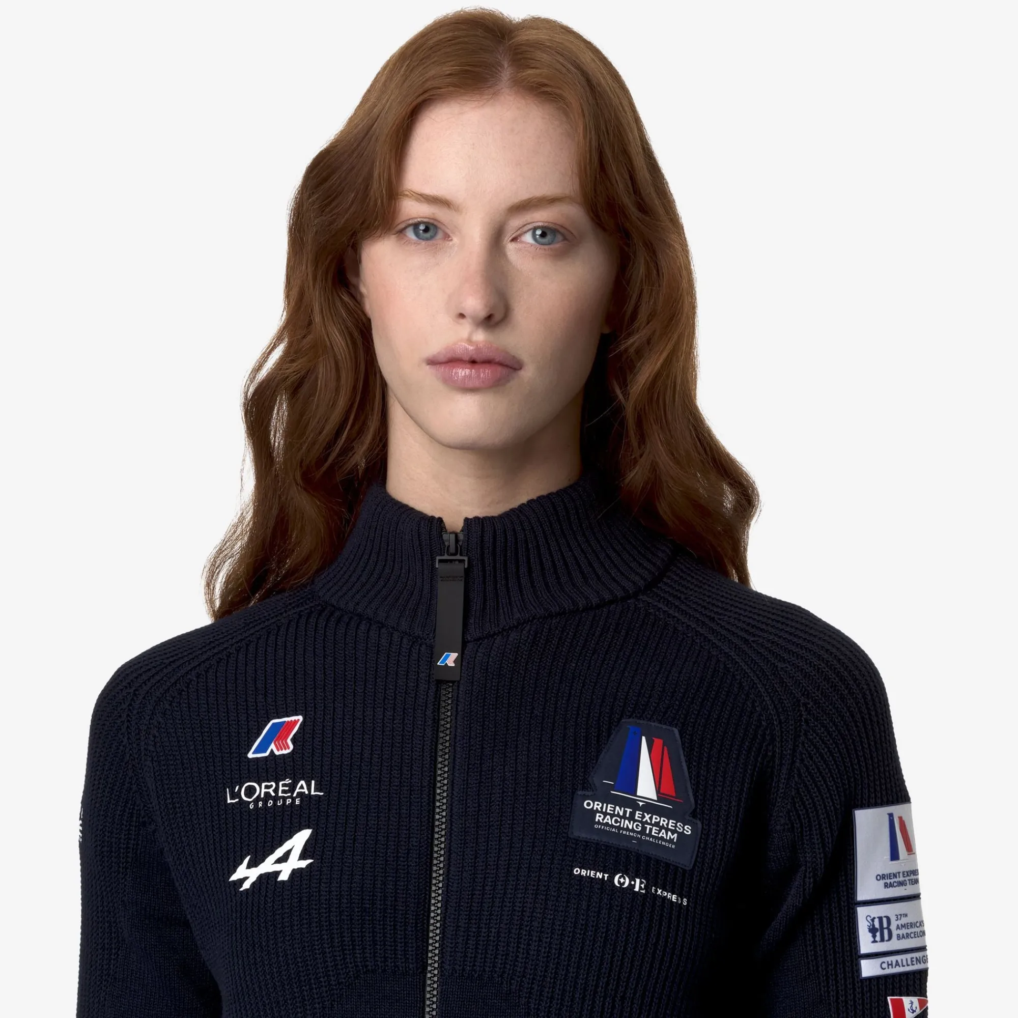Una collezione che celbra il legame di K-Way con il mare e il vento, perfetta per vivere con il giusto stile ogni avventura quotidiana: AULANE ORIENT EXPRESS TEAM AC è la maglia in filato da donna di K-Way REGULAR FIT che commemora la sponsorizzazione di Orient Express Racing Team in occasione della 37esima America’s Cup. Realizzata con doppia lavorazione, in rasato e a coste, con un motivo che richiama le onde del mare. Collo alto e apertura frontale con zip. I polsini e il fondo sono in costina ergonomica. Loghi esterni in applicazione di Orient Express, degli sponsor e di America’s Cup. Logo K-Way in silicone applicato.