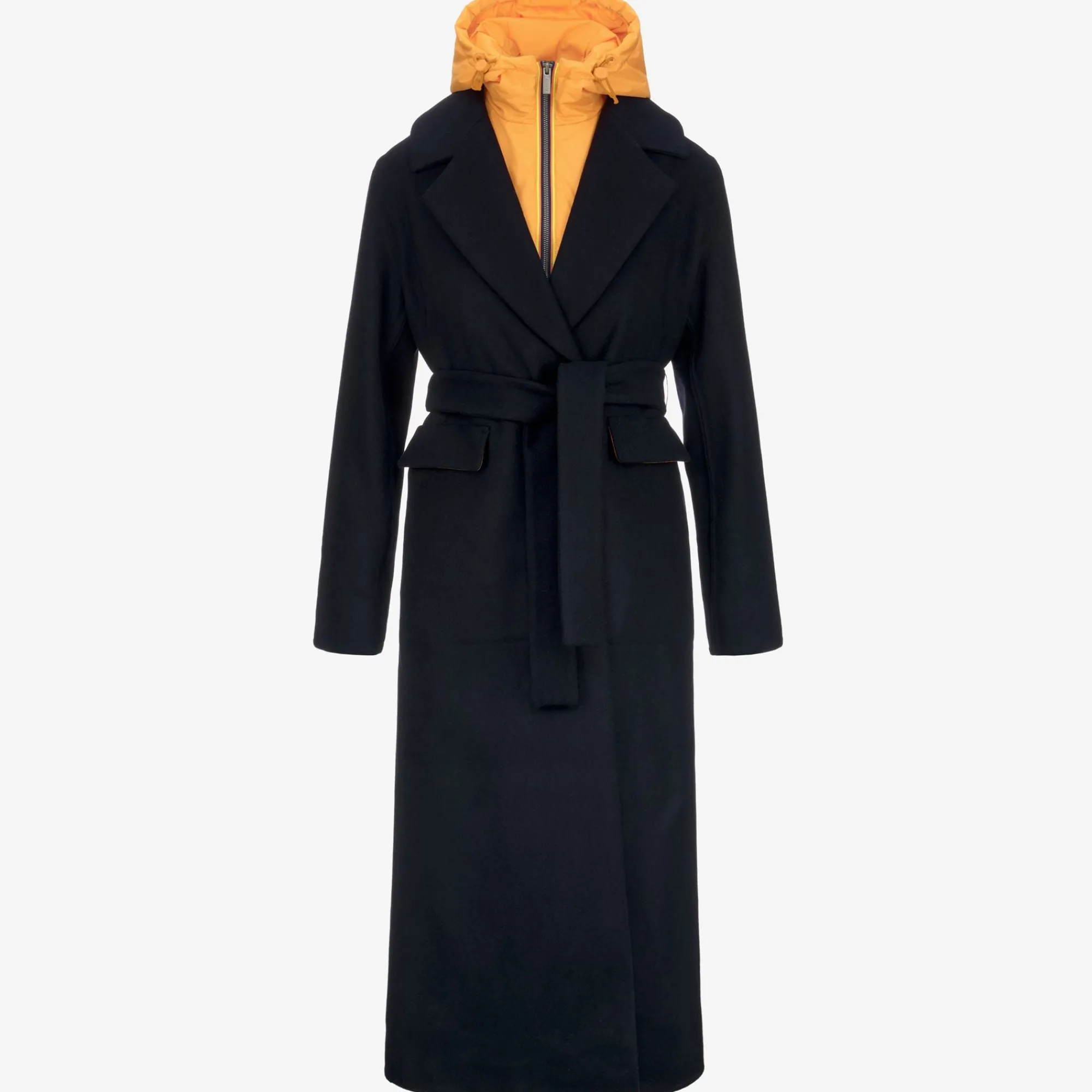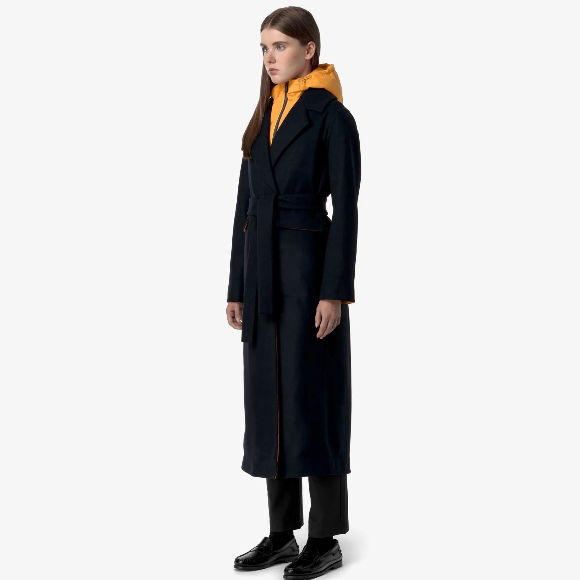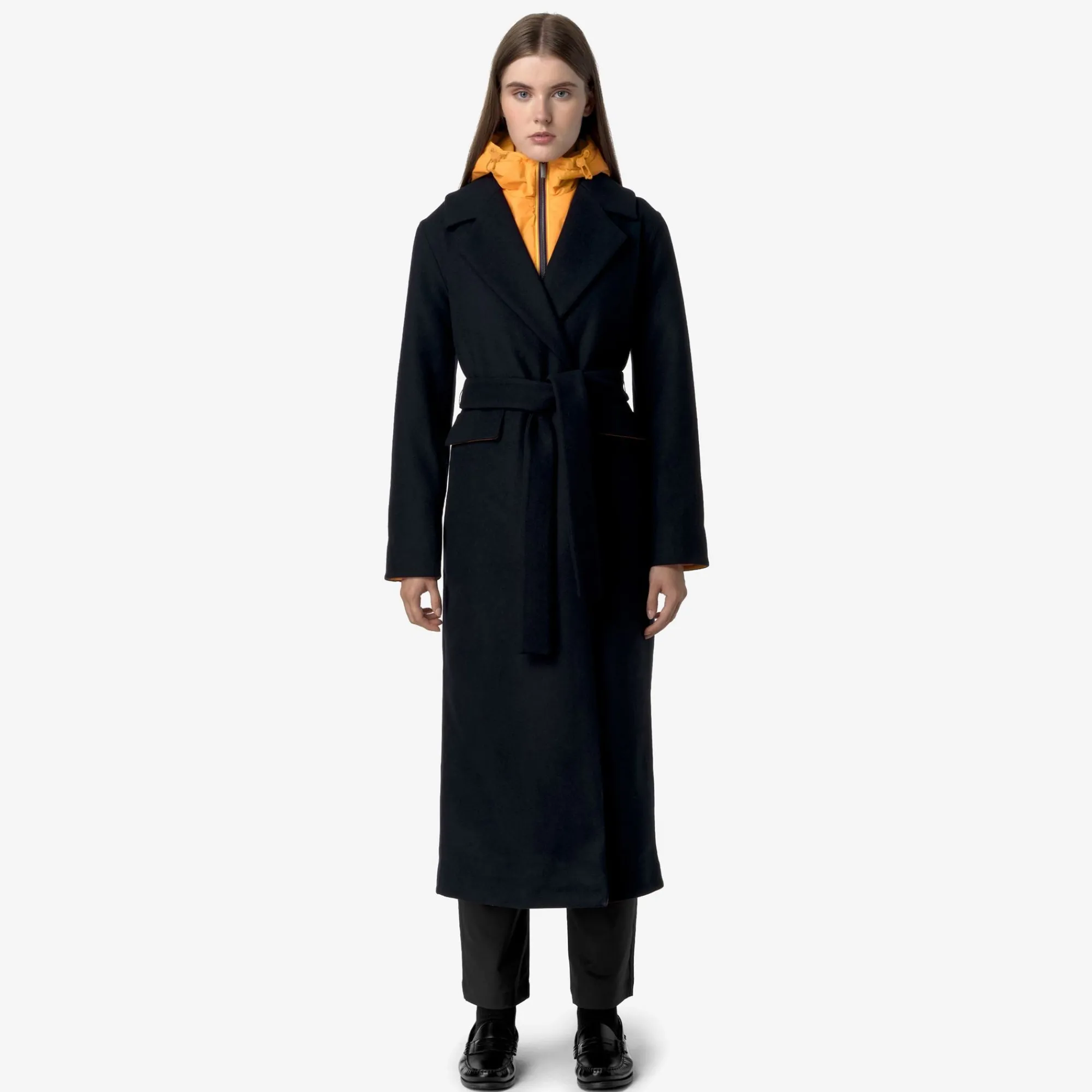 Jorance è un cappotto lungo da donna realizzato in lana certificata Woolmark, che si distingue per il taglio classico con revers e il look urbano adatto a completare moltissimi outfit day-to-night in autunno e inverno: un capospalla elegante e funzionale grazie al gilet interno in nylon Le Vrai 3.0 con imbottitura in ovatta, rimovibile in base al meteo o all’occasione d’uso e dotato di cappuccio regolabile e chiusura con zip. Il cappotto presenta chiusura a tre bottoni tono su tono e cintura rimovibile in vita, tasche esterne con patta, una tasca interna in silicone con zip e una in nylon.