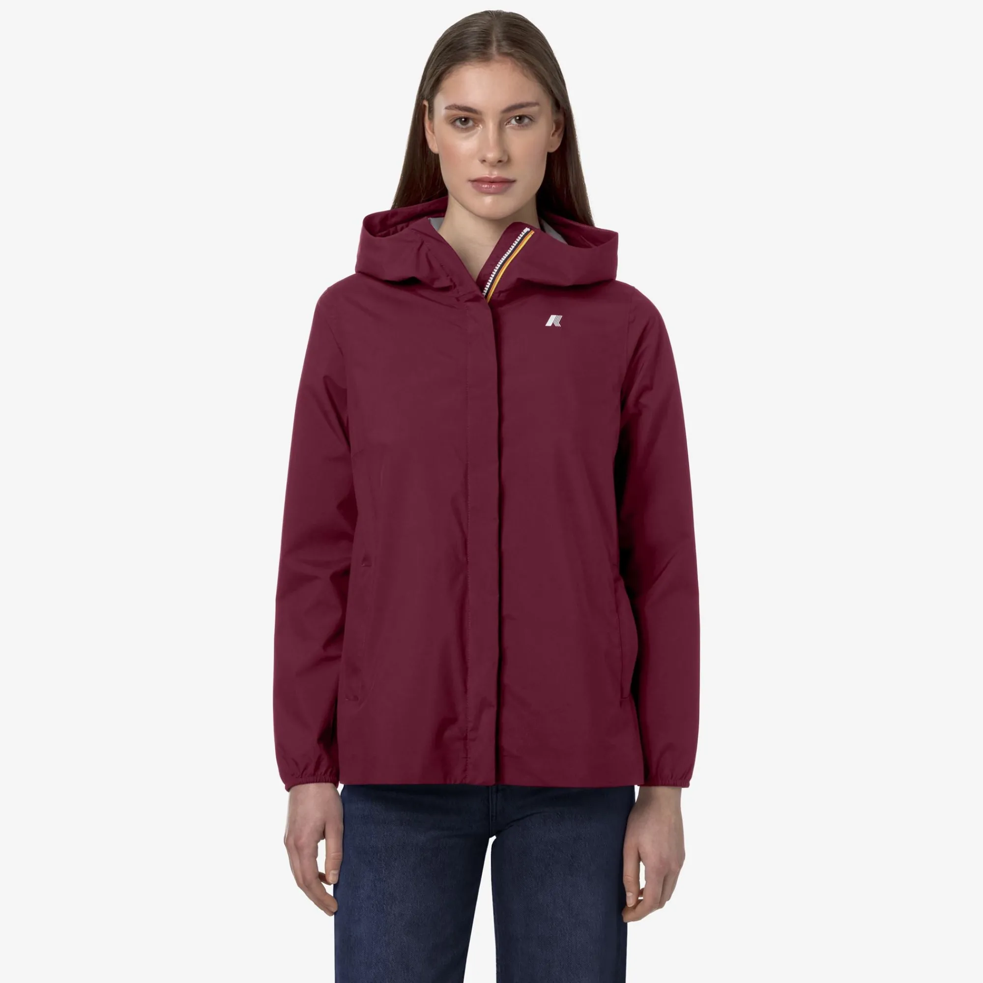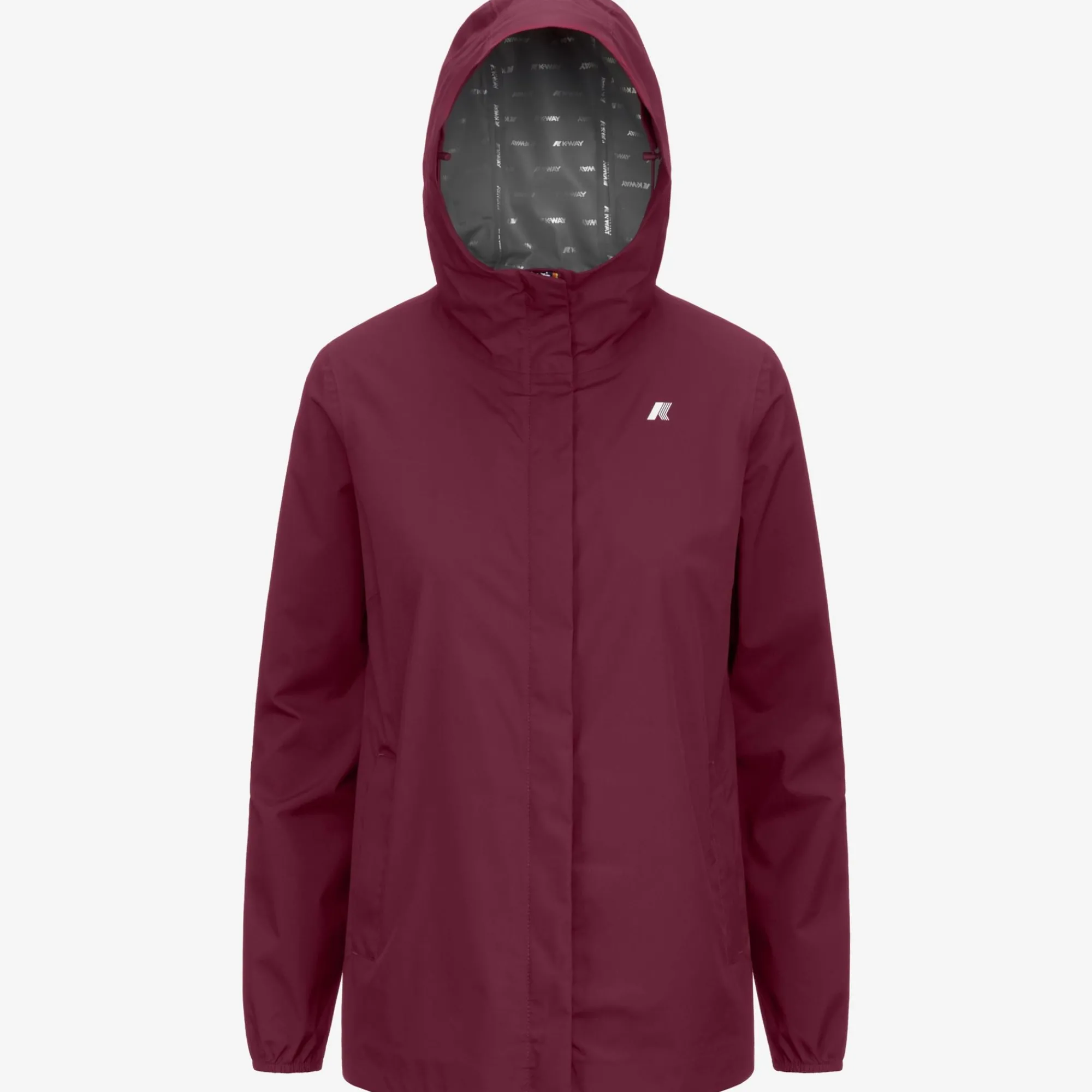 Marguerite è una giacca mid da donna ideale per le mezze stagioni e con vestibilità slim, realizzata in tessuto tecnico elasticizzato riciclato, che segue i movimenti e protegge dal vento e dalla pioggia fino a 5000 colonne d’acqua. L’interno è foderato con una membrana isolante decorata con lettering K-Way stampato all over in tonalità argento. Le tasche laterali con zip, il cappuccio avvolgente, i polsini e i bordi con inserti elastici sono dettagli funzionali che garantiscono aderenza e una vestibilità comoda e veloce.
