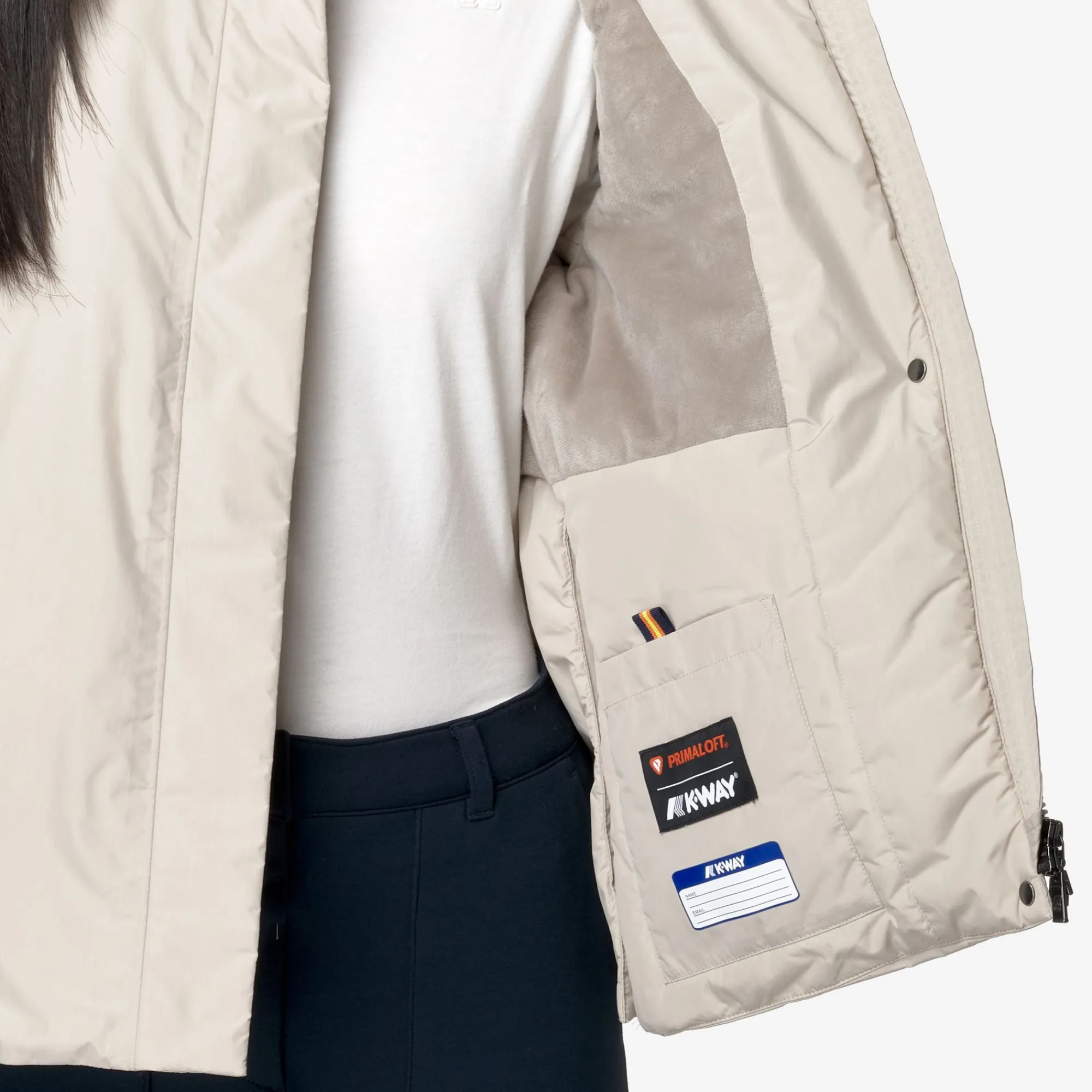 Marlette è una giacca corta da donna che interpreta in chiave elegante e femminile il classico capospalla funzionale e cittadino. Questa giacca presenta la possibilità di modulare le aperture sui fianchi con i pratici bottoni a pressione invisibili all’esterno, grazie ai quali è possibile rendere il capo da classico e semplice a femminile e accattivante. Il suo cappuccio integrato nel collo alto, facilmente estraibile in caso di pioggia improvvisa, conferisce al capo ulteriore praticità. L’esterno, in tessuto soft touch dalla mano croccante e vellutata al tatto, è bilanciato dall’interno rivestito in morbido faux fur. Un grado di calore medio adatto ad autunno e inizio inverno è assicurato dall’imbottitura in PrimaLoft, una fibra ricavata dal poliestere riciclato e altamente isolante, che assicura un elevato grado di calore, un ingombro minimo e un’asciugatura rapida