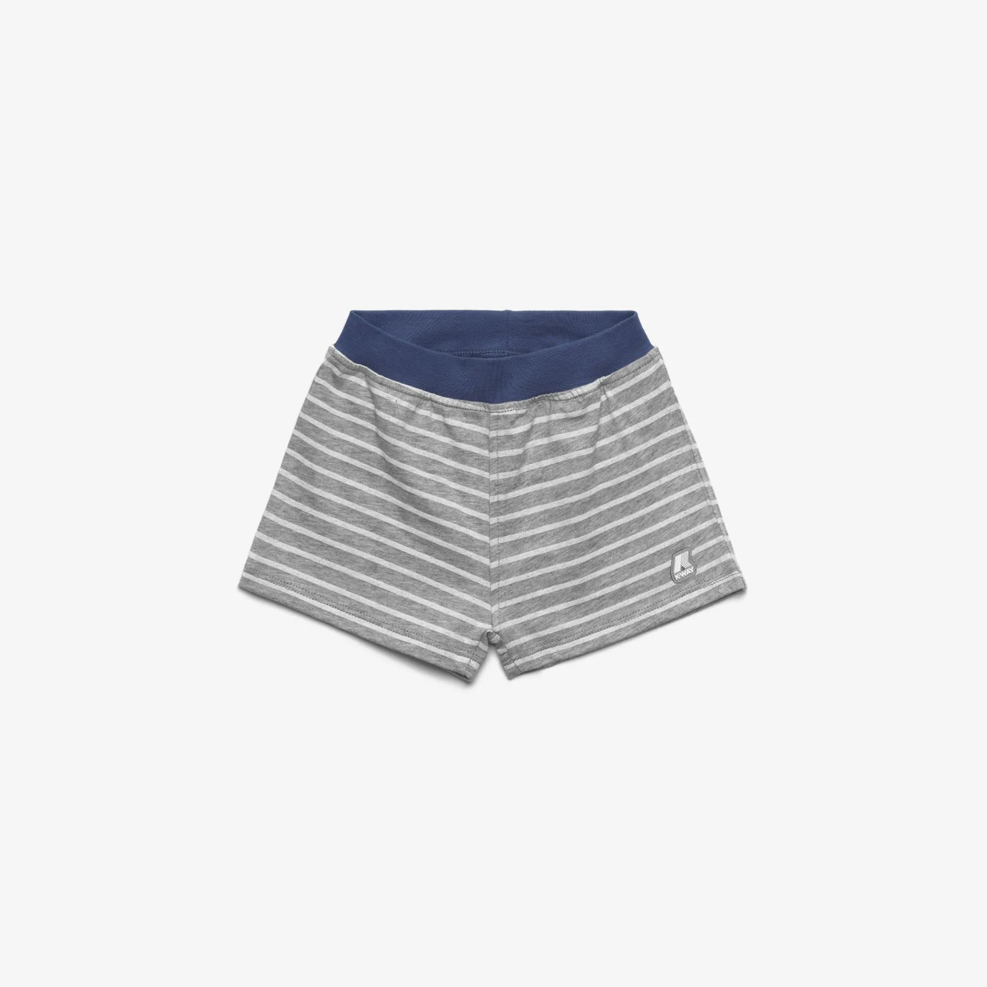 Noisette è un pantaloncino in jersey di cotone a righe che completa il guardaroba quotidiano dei neonati. Questi shorts offrono massimo comfort e libertà di movimento grazie alla linea regular con inserto elastico colorato a contrasto in vita. Il logo bianco K-Way è la firma distintiva del brand.