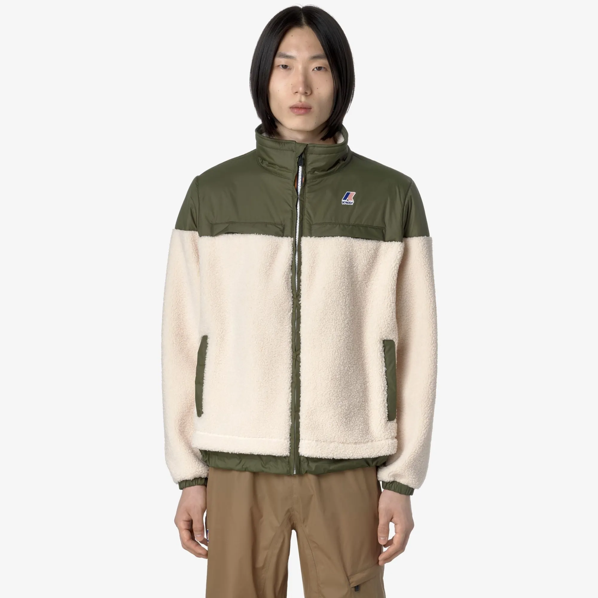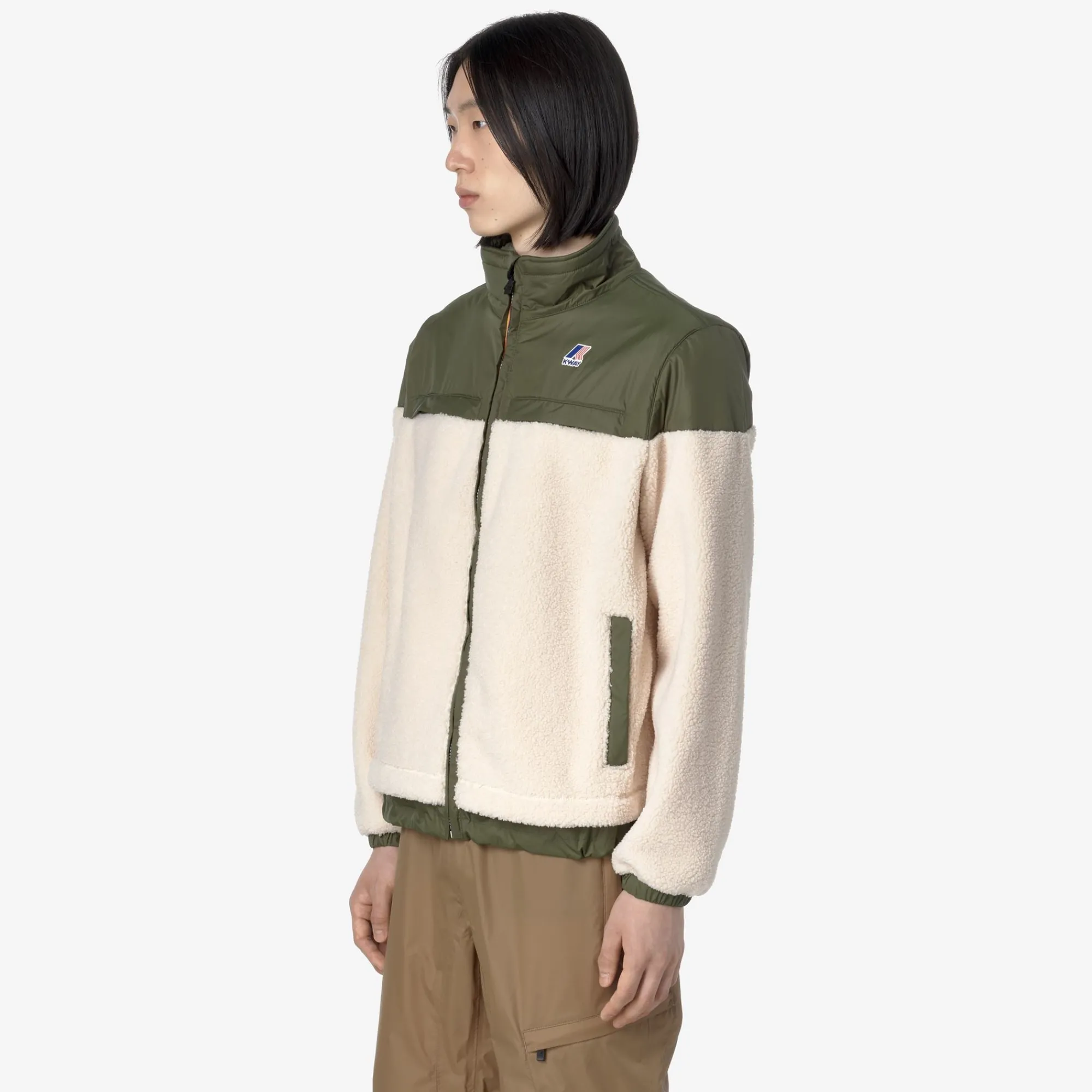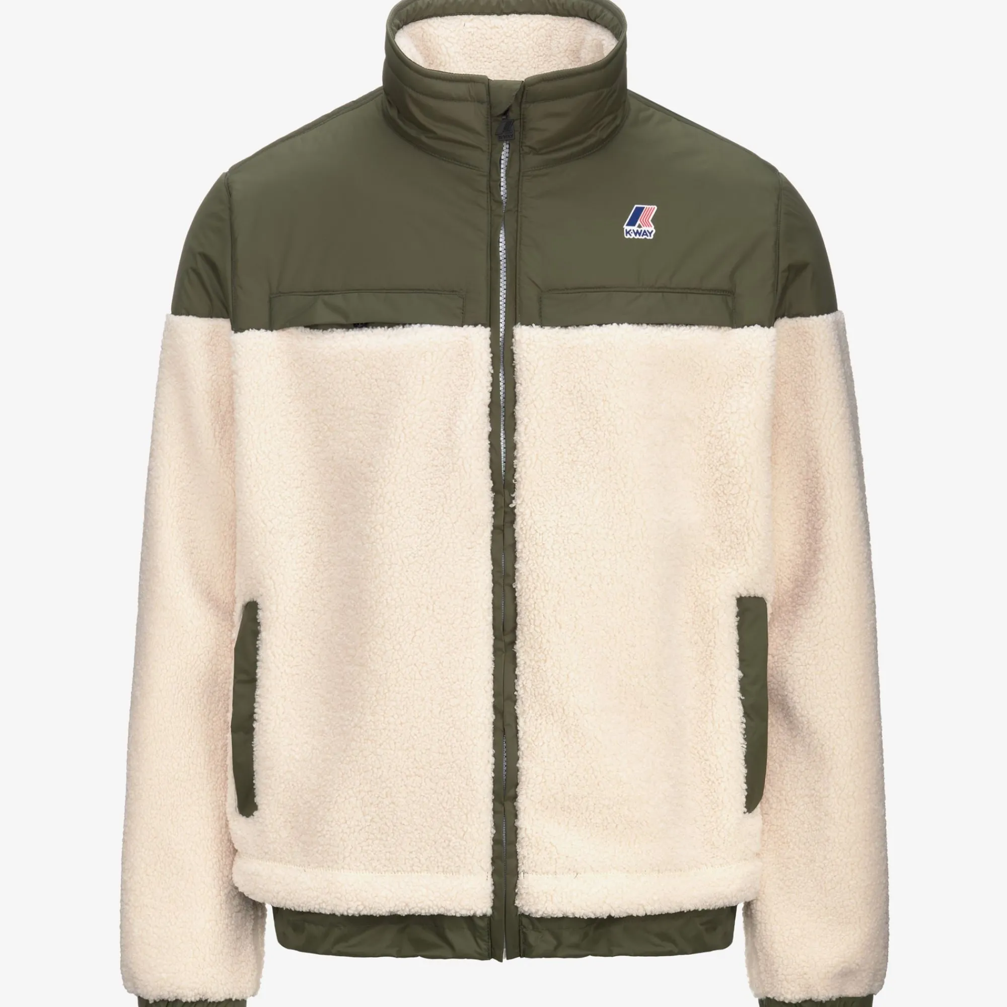 Nersev è una felpa antivento dal look pratico e sportivo, ideale da indossare anche come giacca da esterno durante il cambio di stagione e i primi freddi. Il modello, con vestibilità regolare e chiusura a zip, è realizzato in tessuto sherpa intervallato da applicazioni in nylon che attribuiscono un tocco tecnico al look incrementando la resistenza del capo. Questa felpa presenta collo alto, polsini elastici e fondo regolabile, 2 tasche laterali e un taschino verticale sul petto.
