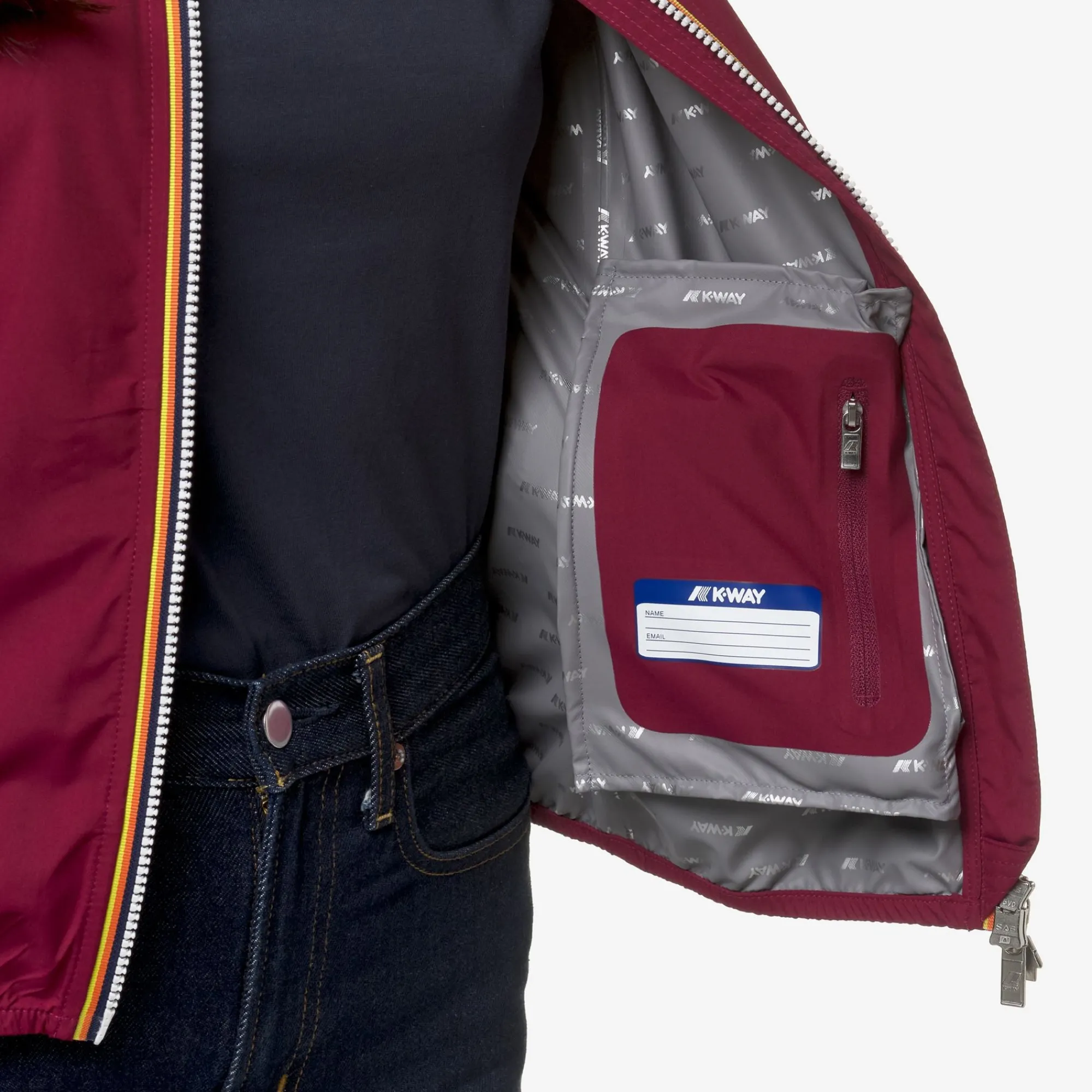 Lily è una giacca corta da donna ideale per le mezze stagioni e con vestibilità slim, realizzata in tessuto tecnico elasticizzato e riciclato, che segue i movimenti e protegge dal vento e dalla pioggia fino a 5000 di colonna d’acqua. L’interno è foderato con una membrana isolante decorata con lettering K-Way stampato all over in tonalità argento. Le tasche laterali con zip, il cappuccio avvolgente, i polsini e i bordi con inserti elastici sono dettagli funzionali che garantiscono aderenza e una vestibilità comoda e veloce.