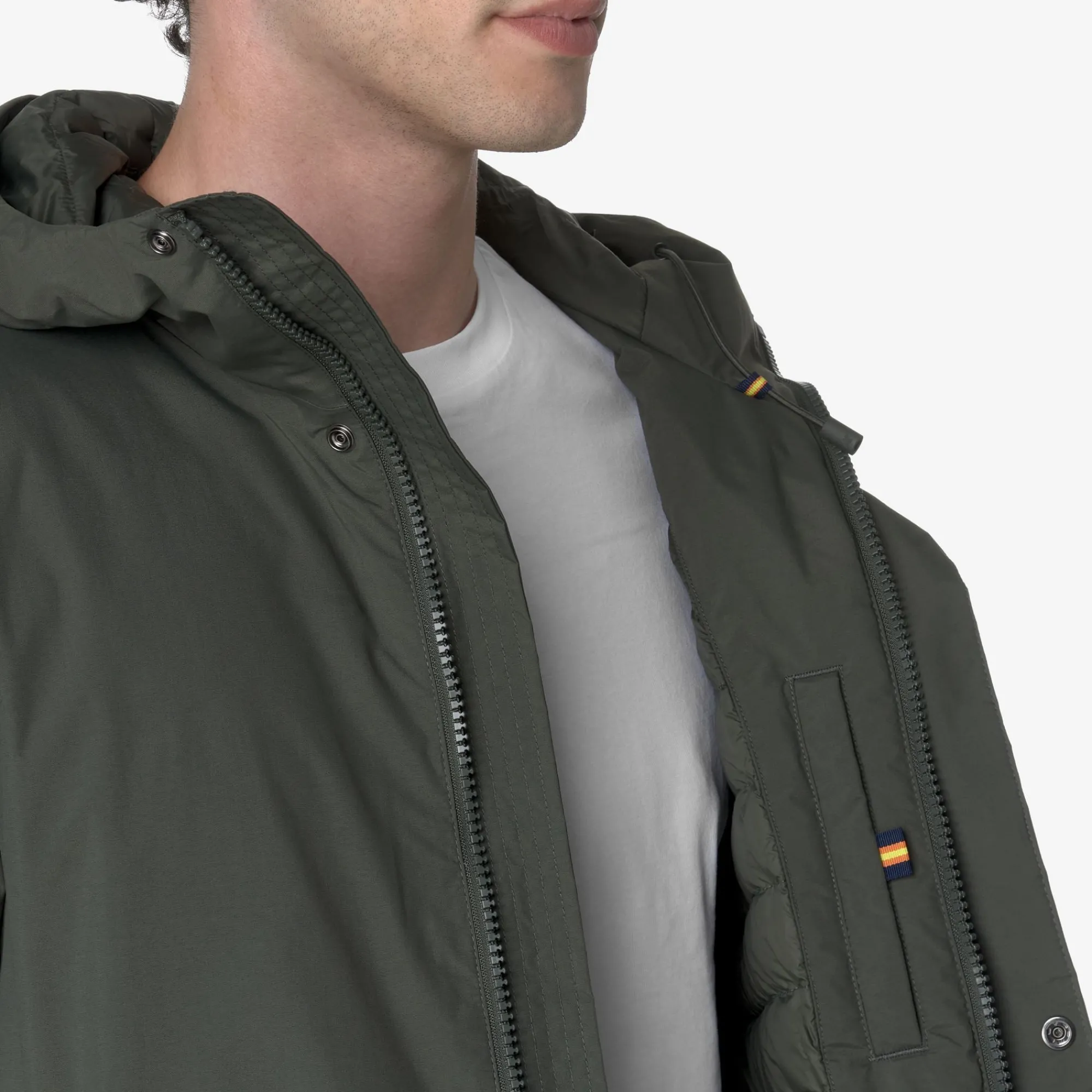 La giacca lunga da uomo Thomas è progettata per la mezza stagione perchè combina l’esterno in nylon ottoman dalla mano fresca e croccante con l’imbottitura mista in piuma e poliestere e la fodera in nylon riciclato che rispettano l’ambiente. All’interno il capo svela una rifinitura curata in ogni dettaglio con trapuntatura a righe orizzontali nella parte alta e il nastro multicolor K-Way al centro per un accento distintivo e deciso.