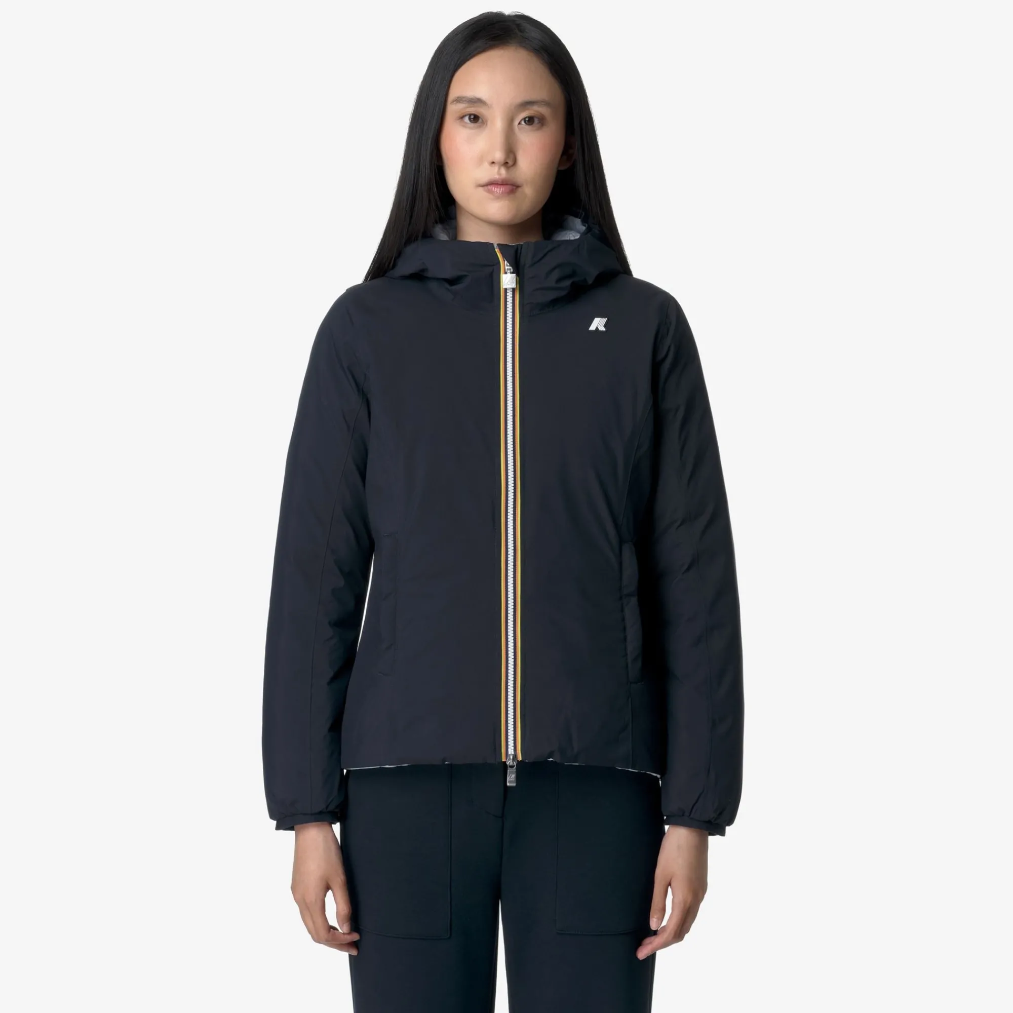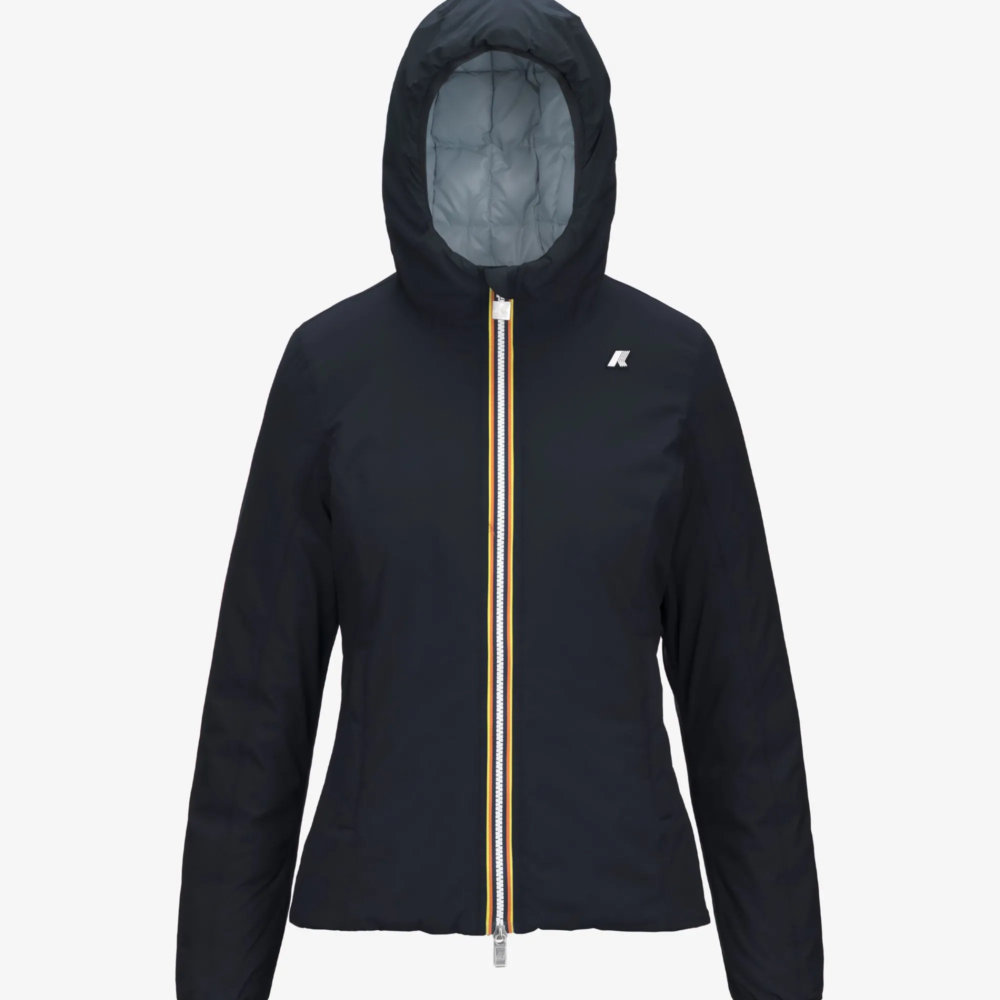 Giacca corta da donna Lily pensata per il clima più rigido perchè imbottita in piuma. Il modello si caratterizza per il design reversibile con un lato in tessuto tecnico liscio e l’altro in nylon trapuntato dal colore a contrasto. Il cappuccio, le tasche, la chiusura con zip e la flap antivento sono dettagli funzionali che proteggono dal freddo.