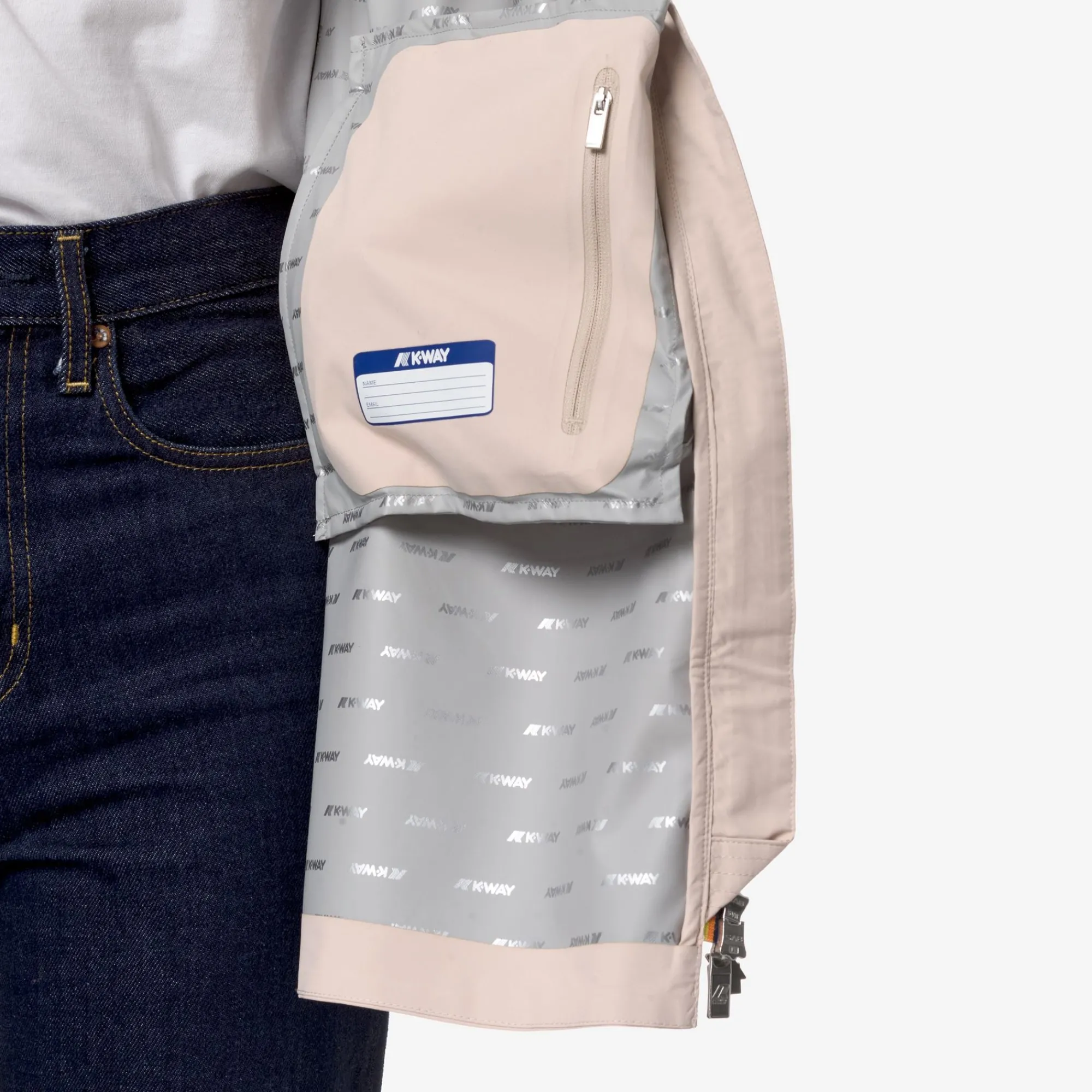 Sophie è una giacca da donna con lunghezza a tre quarti e vestibilità slim, ideale per le mezze stagioni, realizzata in tessuto tecnico elasticizzato e riciclato, che segue i movimenti e protegge dal vento e dalla pioggia fino a 5000 colonne d’acqua. L’interno è foderato con una membrana isolante decorata con lettering K-Way stampato all over in tonalità argento. Le tasche laterali con zip, il cappuccio avvolgente e i polsini con inserti elastici sono dettagli funzionali che garantiscono aderenza e una vestibilità comoda e veloce.