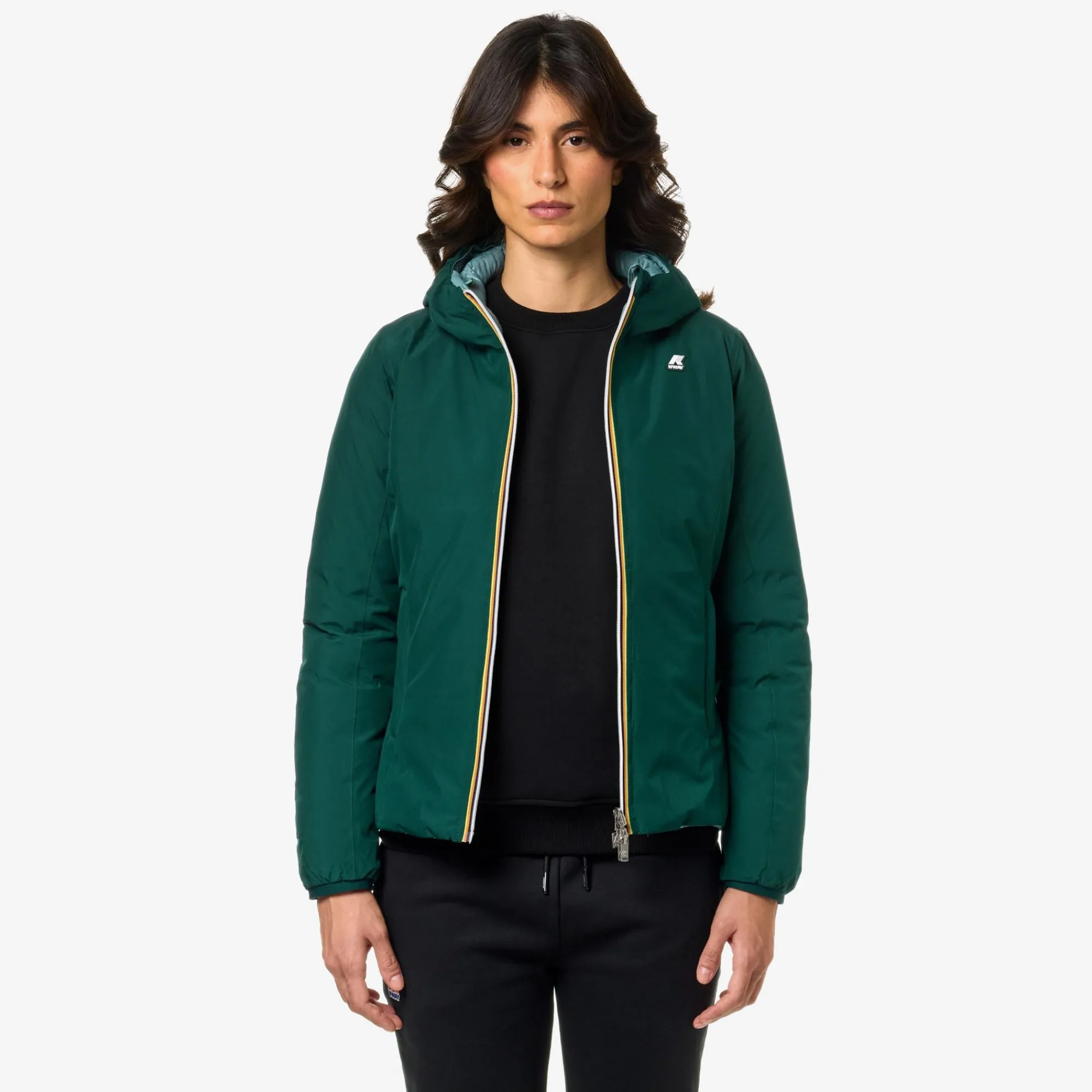 Giacca corta da donna Lily pensata per il clima più rigido perchè imbottita in piuma. Il modello si caratterizza per il design reversibile con un lato in tessuto tecnico liscio e l’altro in nylon trapuntato dal colore a contrasto. Il cappuccio, le tasche, la chiusura con zip e la flap antivento sono dettagli funzionali che proteggono dal freddo.