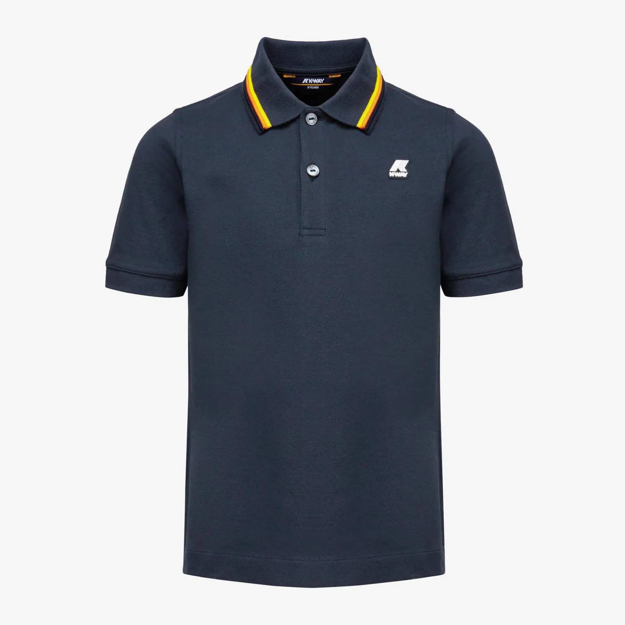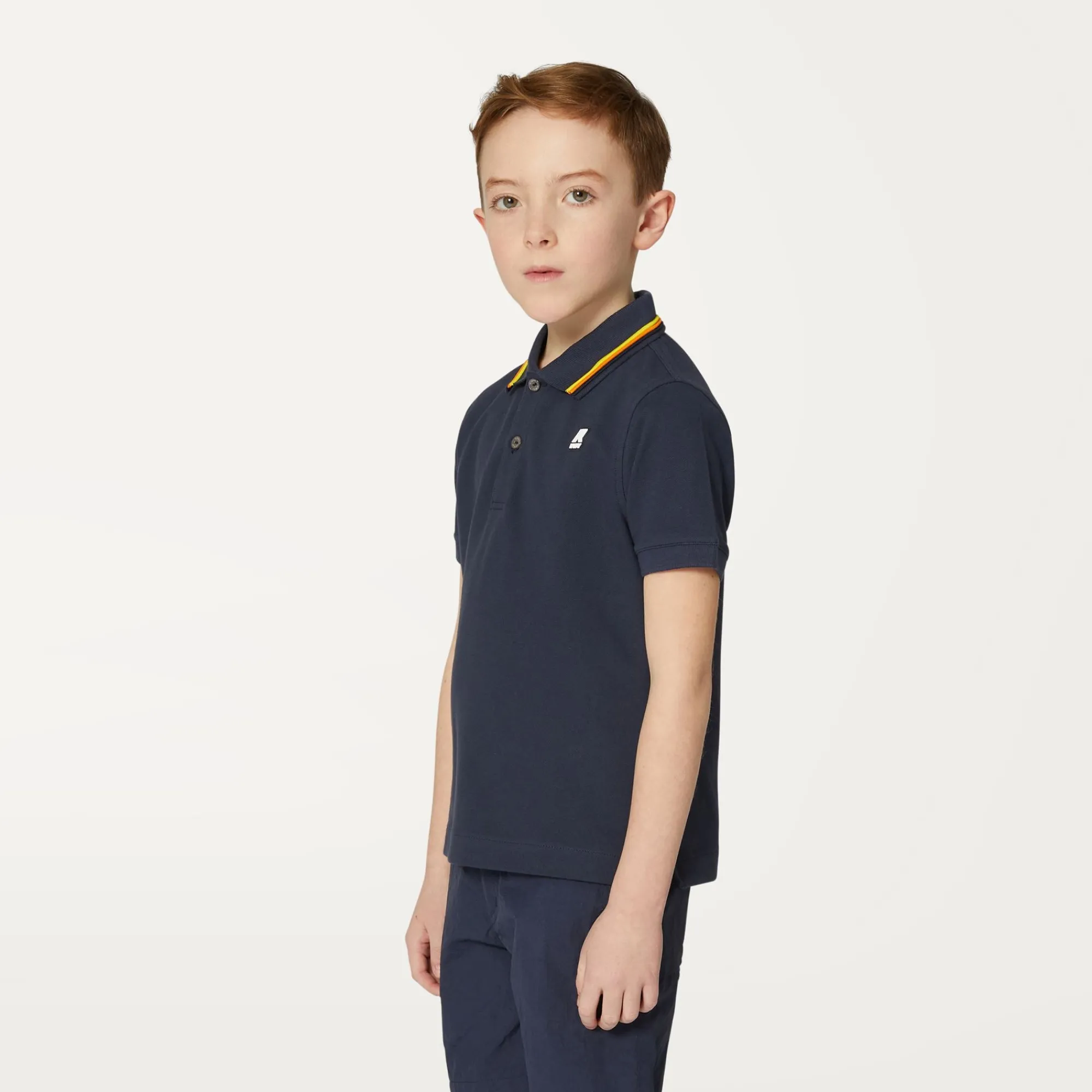 Jude è la polo da bambino realizzata in piquet di cotone stretch morbido ed estremamente flessibile. Si caratterizza per il bordo del colletto con profilo a righe ispirate al tape K-Way e gli spacchetti sui lati che assecondano i movimenti.