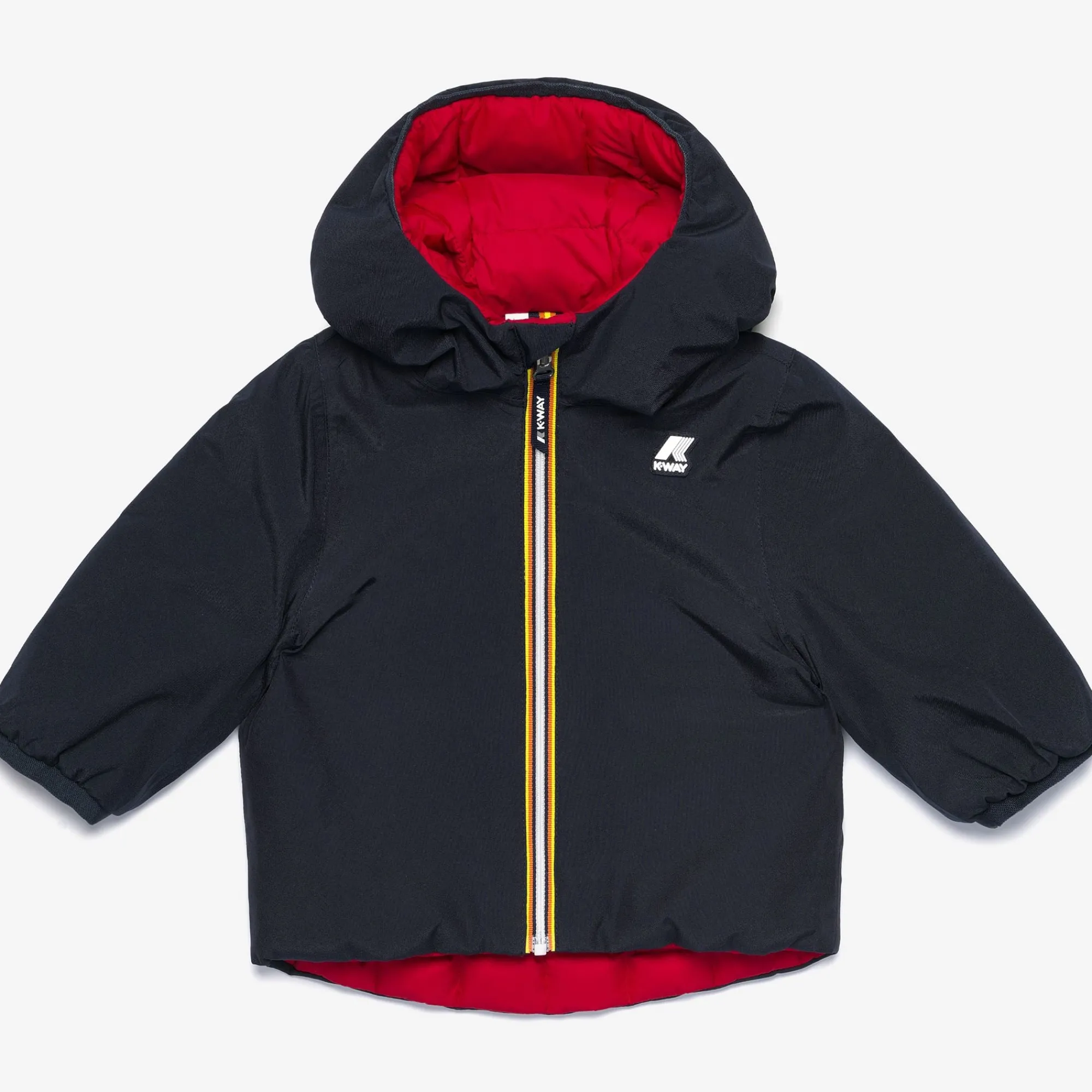 Pensata per il clima più rigido, la giacca corta da neonato Jack si caratterizza per l’imbottitura in piuma. Il modello si caratterizza per il design reversibile perchè combina un lato in tessuto tecnico liscio e l’altro in nylon trapuntato dal colore a contrasto. Il cappuccio, le tasche, la chiusura con zip e la flap antivento sono dettagli funzionali che proteggono dal freddo.